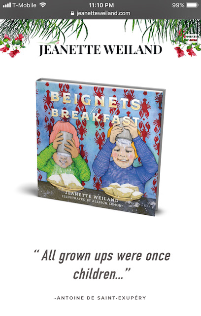 The animated banner for Jeanette Weiland's website to both promote and sell a children's book called Beignets for Breakfast.
