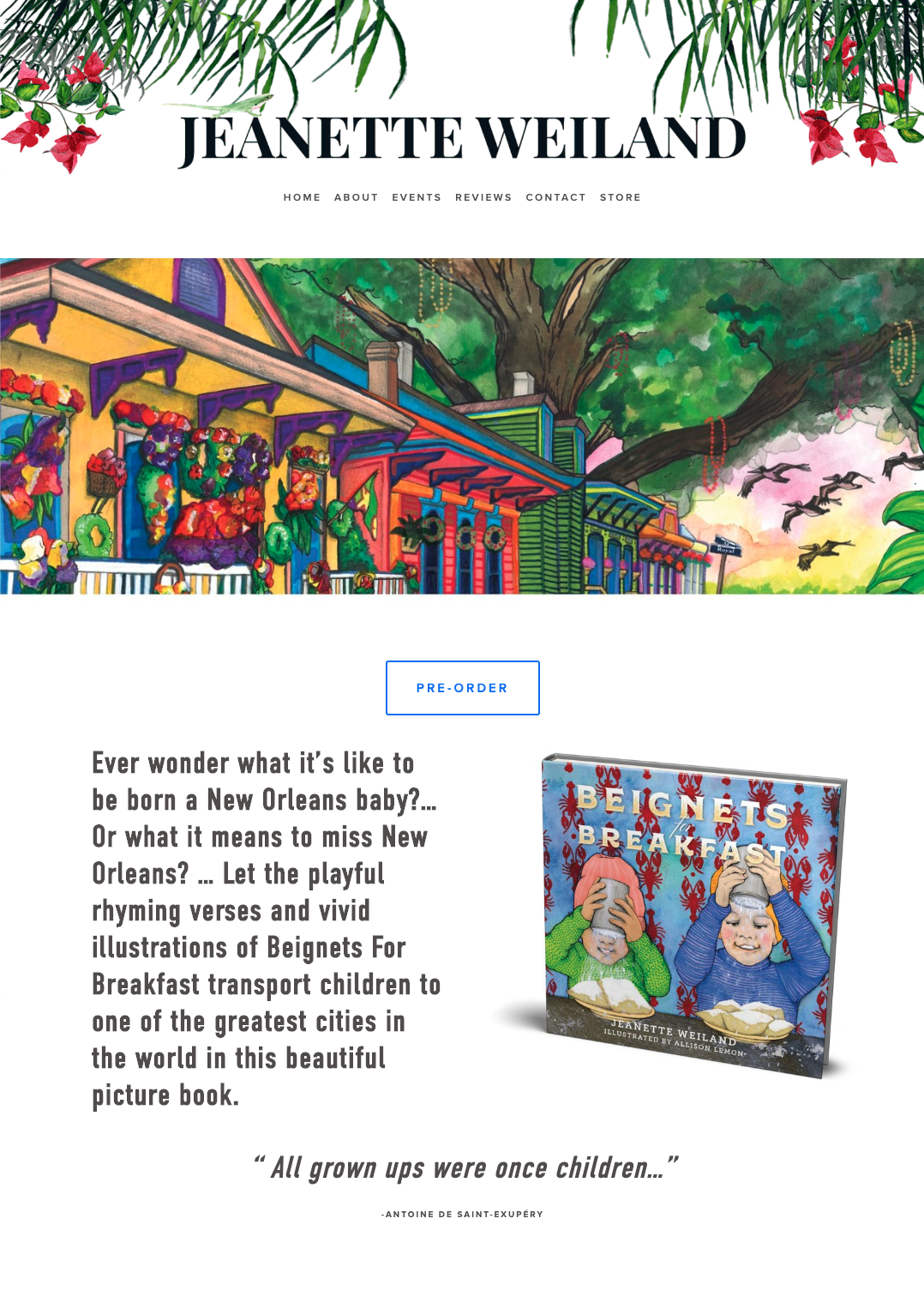 The animated banner for Jeanette Weiland's website to both promote and sell a children's book called Beignets for Breakfast.